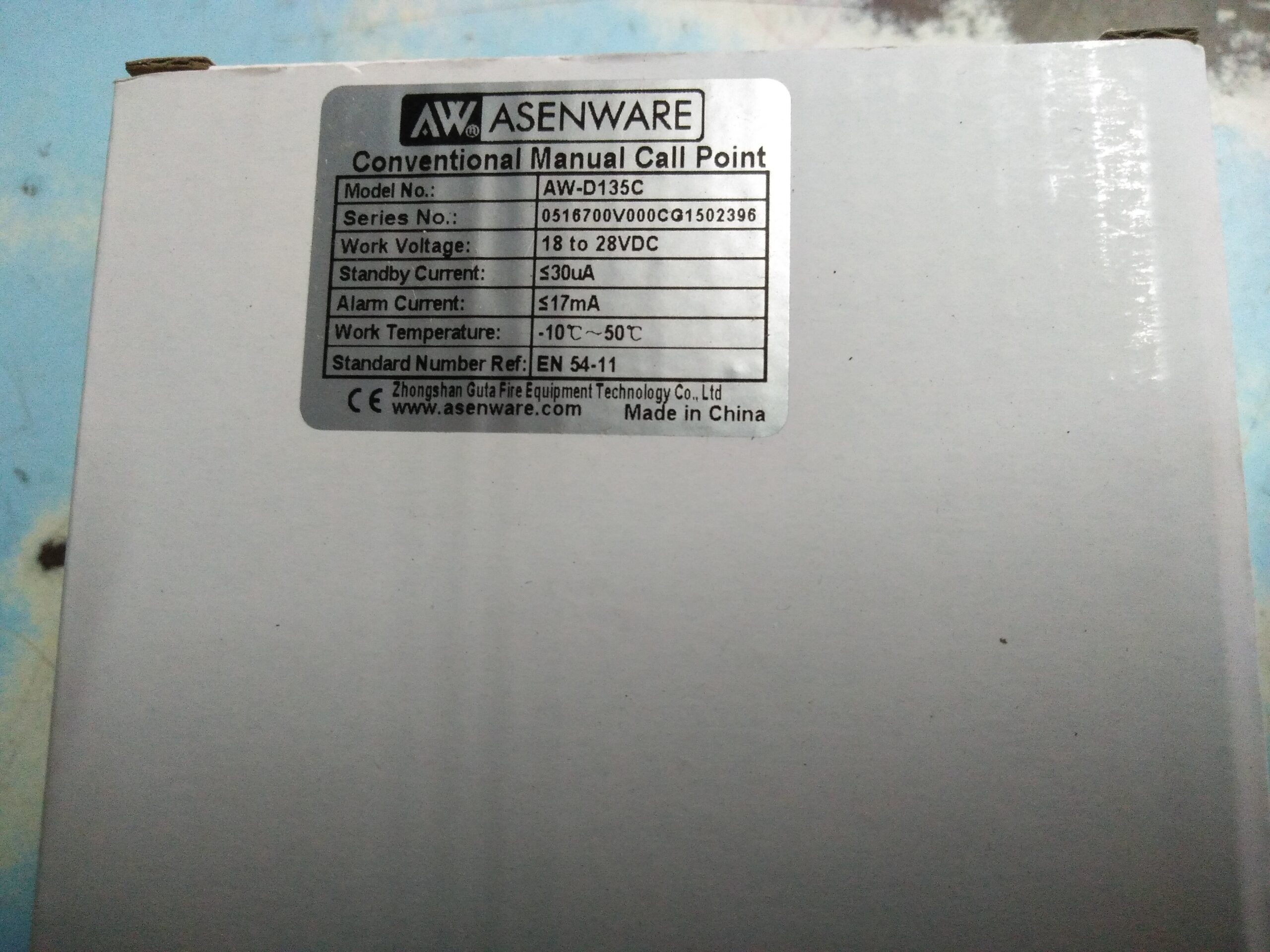 Asenware Manual Call Point is designed to be used with an intelligent two-wire control system. If it is pressed after a fire is manually confirmed, an alarm signal may be sent to a fire alarm control system which will, after receiving the alarm signal, display the equipment status of the manual fire call points. When the manual fire call points are operating normally, the red indicator will blink; when there is a fire alarm, it will remain lit.