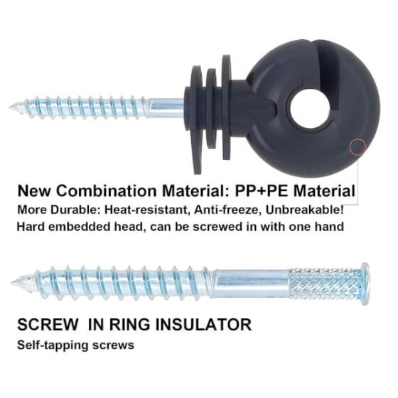 Electric Fence Screw on insulator, Ring Post Wood Post Insulator for Farm Animal Fencing and Electric Fence Accessories.